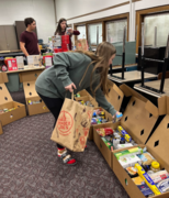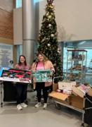 On the last day before break, the Sock Drive donations were sorted and organized into 34 gift bags that included socks, snacks, lotions, puzzle books, and other goodies, and were delivered to Legacy Square to distribute to the residents.