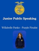 Nebraska FFA holds a Public Speaking contest, split into two categories. Junior Public Speaking is open to freshmen and sophomores. Senior Public Speaking is open to juniors and seniors. Speakers in these contests are able to speak about anything related to agriculture. Willabelle Panko was a finalist for Junior Public Speaking with her speech on vertical farming. Mary Dente received a red ribbon in Senior Public Speaking with her speech on farm succession planning. Emma Ott was named as a state qualifier after receiving a purple ribbon on her speech about the importance of agriculture educators.