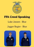 The Creed competition consists of reciting the FFA Creed that was written by E.M. Tiffany followed by answering questions about how members believe the words of the creed affects each individual. Luke Janzen and Jagger Regier were this year's creed speakers for Heartland. They both received a blue ribbon.