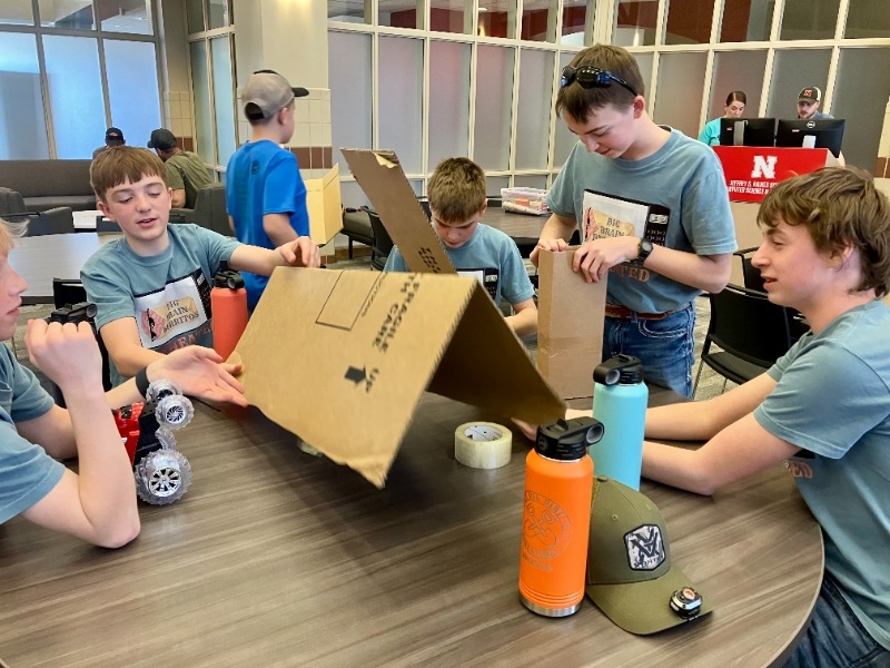 At the event, the teams gave their project and robot presentations. They also competed against each other in a robot game. Other highlights included touring Raikes School of Computer Science and Management and completing an activity with remote control cars protecting a treasure with cardboard, tape, and scissors only. The students also enjoyed UNL Dairy Store ice cream!